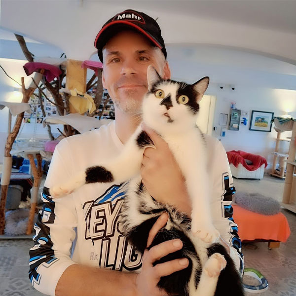 Ich liebe die ganze Katzen Rasselbande. Gerne mache ich Hausmeister und Gartenarbeiten. Es ist eine schöne Beschäftigung, die unseren Katzen zugute kommt. Es macht mir Freude für die Fellnasen zu arbeiten.
