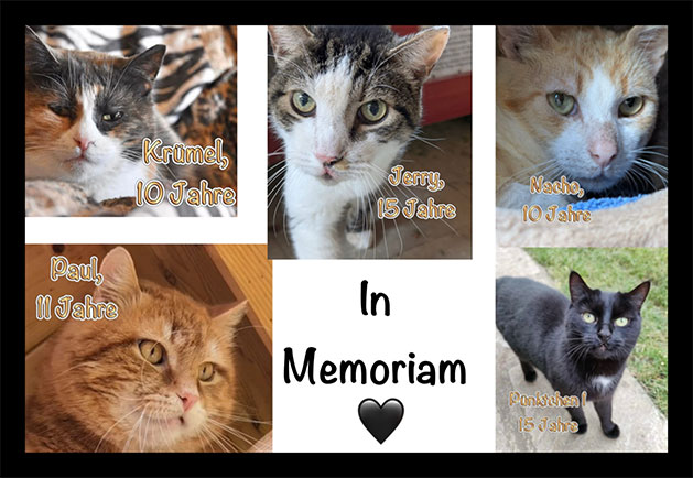 Leider ist in einem Gnadenhof der Tod ein ständiger Begleiter. Zu oft kommen Miezen zu uns, die in ihrem Vorleben bereits gesundheitliche Schäden erlitten haben wie Kater Nacho. Aber es gibt Gottseidank auch Katzen wie Pünktchen, die praktisch ihr gesamtes fünfzehnjähriges Leben bei uns verbringen durfte.