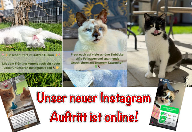 Seit einigen Tagen hat unser Gnadenhof seinen Instagram-Auftritt passend zur Jahreszeit einer Frühjahrskur unterzogen. Verantwortlich dafür sind Paula und Jaqueline, die sich die Mühe gemacht haben, unseren Account moderner zu gestalten, um so eine noch größere Gruppe an Katzenfans anzusprechen.