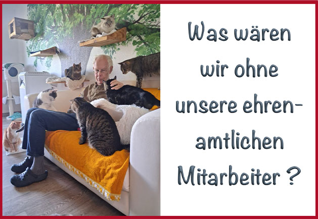 Doch dies sind nur einige Beispiele von vielen. Wir könnten hier noch viele ehrenamtliche fleißige Helferinnen und Helfer aufzählen. So wie Horst, der unsere Paten über ihre Patenkatzen informiert, Mark, der immer da ist wenn man ihn braucht, Angelika, die unsere Paten betreut und Urkunden versendet, Bärbel, die jeden Mittwoch bei uns ist oder Sabine, Dieter, Stephan, Katrin und einige mehr.