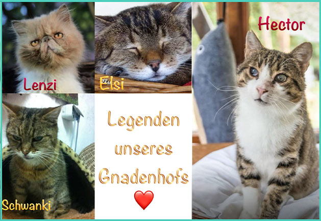 Auch wir schreiben beim Tod einer geliebten Katze oft Ähnliches, doch sprechen wir immer wieder mit dem Zusatz „Weißt du noch“ gerade von Miezen die zu den Legenden unseres Gnadenhofs gehören. Über einige davon möchten wir heute und auch in folgenden Ausgaben berichten und damit liebe Erinnerungen hochhalten.