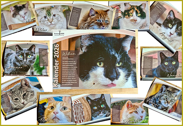 Unsere Fotografen haben wieder keine Mühen gescheut und unsere Miezen von ihrer besten Seite fotografiert. Obwohl, eigentlich haben unsere Katzen nur gute Seiten. Die Auswahl der Bilder fiel dieses Jahr besonders schwer, schließlich konnten erst in einer internen Abstimmung die jeweiligen Monatsmodelle gefunden werden.