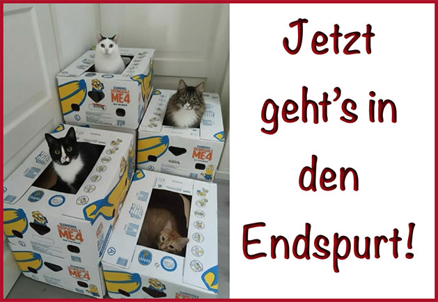 Ganz herzlichen Dank an alle Unterstützer und liebe Grüße von unseren Miezen die gerade für einen Gewinn alle Pfoten drücken. 😸♥️🙏