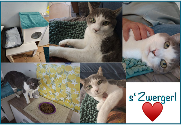 In unserer Reihe „Wie geht’s denn unseren Katzen auf Pflegeplätzen“ haben wir uns diesmal nach einer besonderen Mieze erkundigt. Dabei geht es um das Zwergerl, sicher noch vielen aus der Zeit in Sonnenham bekannt. Sie wurde etwa 2012 geboren und kam als Scheidungswaise zu uns. Das Besitzerpaar hatte sich getrennt, übrig blieb die Katze, deshalb musste sie weg.