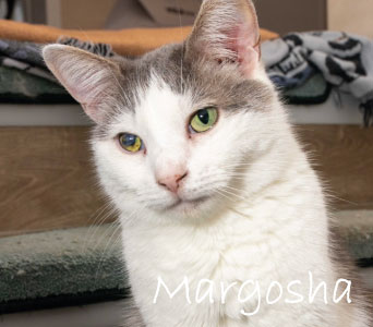 Margosha verlor aufgrund des Ukrainekriegs ihre Heimat und durfte deshalb bei uns einziehen. Sie ist eine besonders neugierige, an allem interessierte Mieze, die überall zu finden ist. Trotz ihrer eher schmächtigen Figur ist sie sehr durchsetzungsfähig und setzt ihre Pfote recht kräftig ein. Darüber täuscht auch ihre leise Fistelstimme nicht hinweg, sie ist aber lieb zu Menschen, lässt sich sehr gerne streicheln und freut sich über jeden Besuch.
