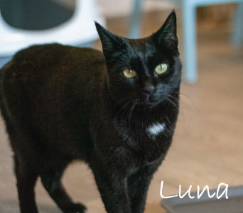 Die zwölfjährige Luna war knapp drei Jahre bei uns . Sie hatte bei einem Unfall einen Schwanzabriss erlitten, dazu stellte sich heraus, dass sie Trägerin des Leukosevirus war. Luna ließ sich sehr gerne streicheln, wenn es ihr aber dann zuviel wurde, zeigte sie das recht deutlich! Mit ihren Spitzohren erinnerte sie an Batman, auch ihr hübscher weißer Brustfleck war charakteristisch für die hübsche Mieze. Leider machten ihr Herzprobleme immer mehr zu schaffen, am Ende kam dann auch noch ein Lymphom dazu. Luna entschied sich, den Weg über die Regenbogenbrücke anzutreten, jetzt hat sie keine Schmerzen mehr.