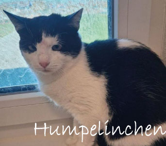 Humpelinchen lebte in der Gegend von Neuburg a.d.Donau als Streunerin. Sie wurde immer nur kurz an einer Futterstelle gesehen wenn sie Junge warf, dann verschwand sie wieder. Im Herbst wurde sie dann an der Stelle mit einem toten Katzenbaby gefunden. Endlich konnte sie gesichert werden. Eine Röntgenuntersuchung ergab einen alte Knochenverletzung an einem Gelenk, deswegen erinnert ihr Gang etwas an einen Hasen. Dazu hatte sie eine entzündete Fistel die lange nicht heilen wollte. Nach erfolgter Kastration durfte sie bei uns einziehen, ist aber noch recht scheu, was bei Streunern aber völlig normal ist.