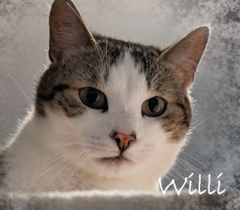 Willi lebte mit seinen Eltern Hänsel und Gretel auf einem Bauernhof in Österreich. Als der Bauer verstarb, beauftragte die Hoferbin den Jäger alle drei Katzen zu erschießen. Dieser verständigte aber Tierfreunde, die fingen die Katzenfamilie ein und brachte sie über die Grenze zu uns. Hänsel und Gretel sind leider mittlerweile verstorben, Willi findet Miezen toll und sucht immer wieder die Freundschaft eines Katzenmädchens und ist dann immer schwer verliebt.♥️